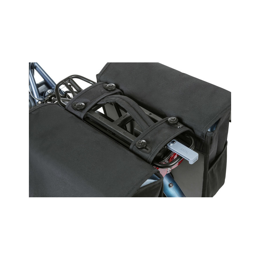 La forme et la qualité de ses matériaux permettent d'exploiter pleinement le volume des sacoches. Ce modèle est doté d'un système d'attache MIK pour monter la sacoche sur votre porte-bagages grâce au support de système MIK (vendu séparément C8602064) . L'intérieur est même doté d'un compartiment refermable par un cordon pour sécuriser vos affaires.